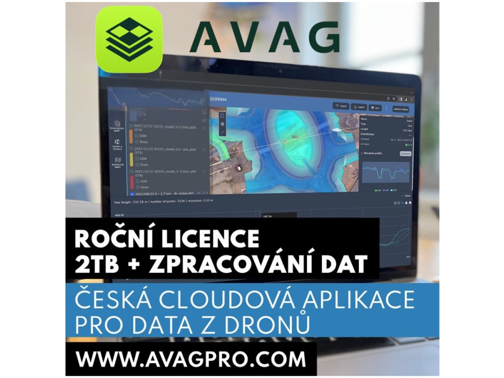 AVAG je velmi efektivní a uživatelsky přívětivá cloudová platforma pro zpracování fotogrammetrických dat z dronů a práci s nimi. Umožňuje práci ve 2D a 3D prostředí. Součástí cenové nabídky je i školení a podpora.