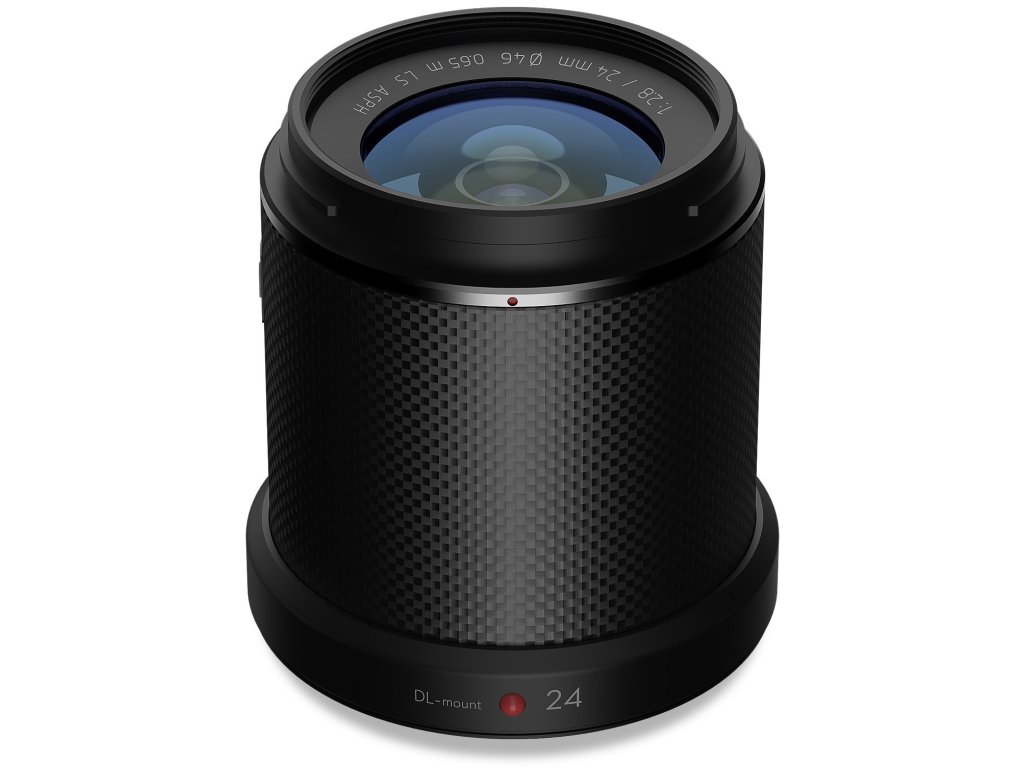 - DJI DL 24 mm F2,8 LS ASPH (se sluneční clonou a vyvažovacím kroužkem/filtrem), FOV 84°