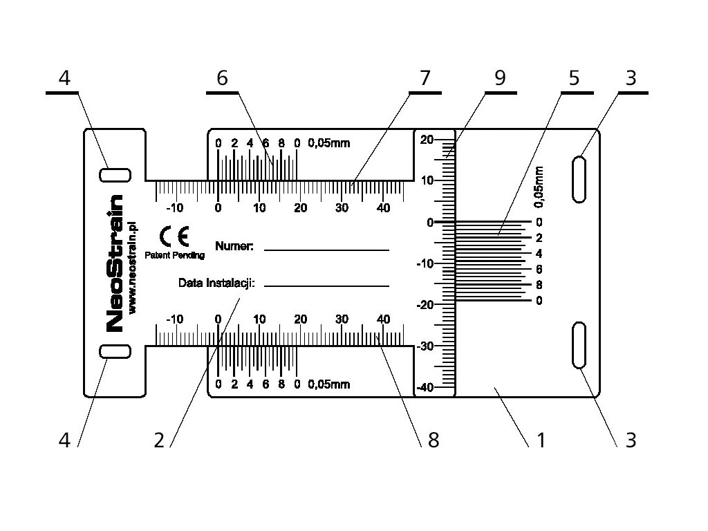 Měřidlo trhlin NeoStrain - indikátor otevření trhliny