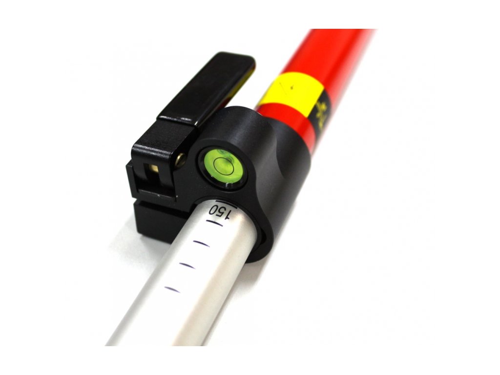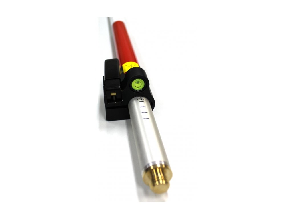 - Jasně červená a bílá barva zvyšuje viditelnost výtyčky v terénu. Nastavitelná svorka umožňuje jednoduchou a rychlou aretaci tyče v požadované výšce.