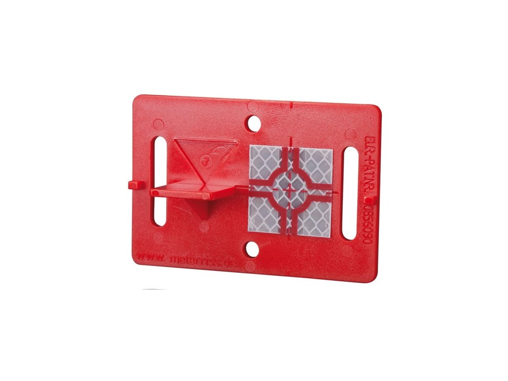 Červená terčová deska 90 x 60 mm, s dálkoměrným filmem 30 x 30 mm. Pomocí moderních totálních stanic lze bod na fólii sledovat až do vzdálenosti 80 m (v závislosti na použitém zařízení).